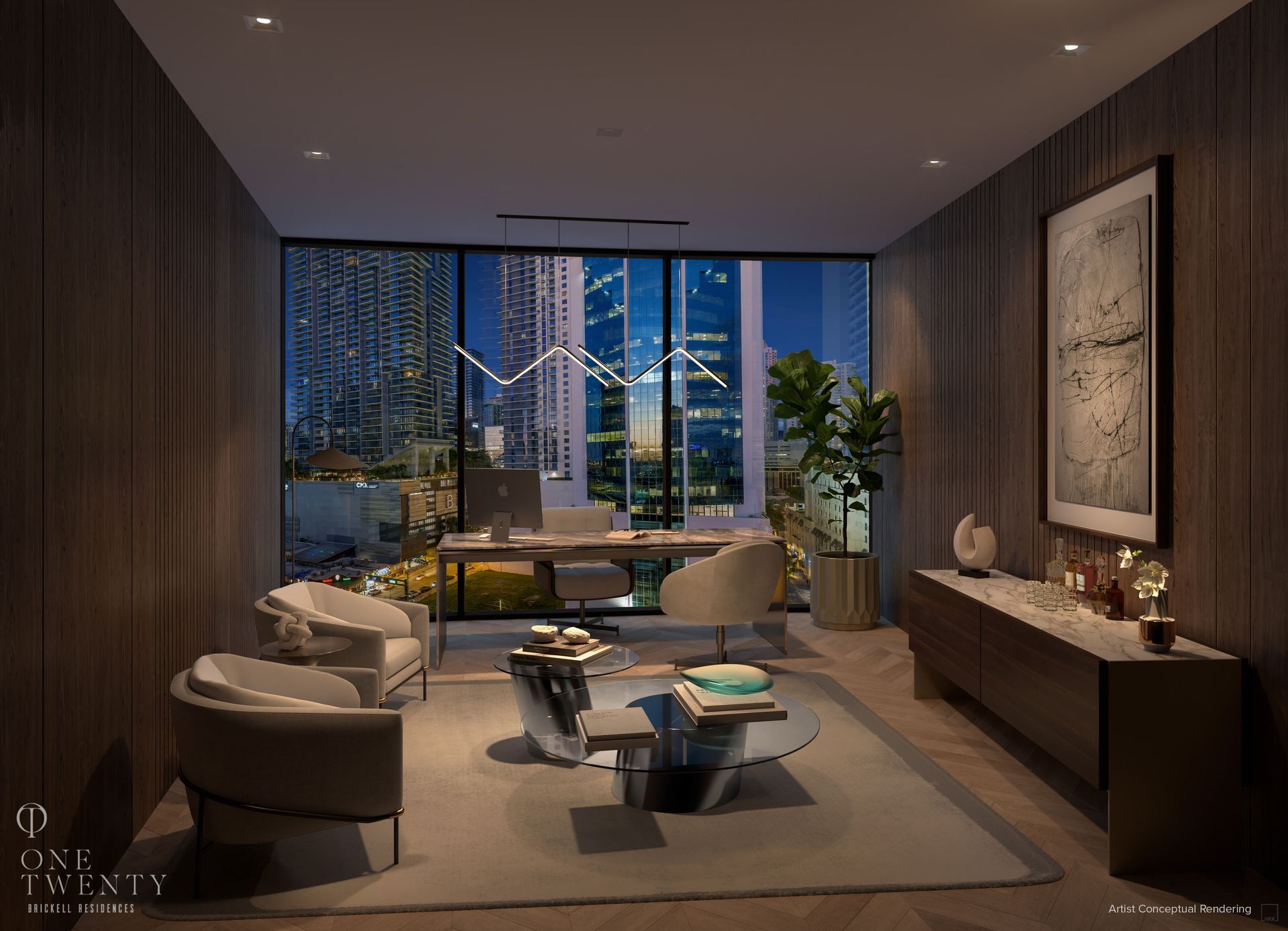 One Twenty Brickell Residences é um projeto inovador de 34 andares em Brickell, Miami, oferecendo 240 residências de luxo totalmente mobiliadas. O grande diferencial do empreendimento são as exclusivas suítes de escritório privativas, com elevadores dedicados, acesso a salas de conferência e serviços de concierge.